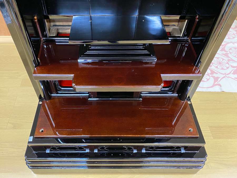 艶やかな美しい仕上がりです。下地を丁寧に整えて何度も塗り重ねていくことで、表面が平滑になり深みのある艶が出て、新品と見紛うほどの美しい仕上がりになります。「お洗濯だから」と工程を省くことは一切せず、新しいお仏壇を作るのと全く同じ手間と時間をかけて塗り上げます。