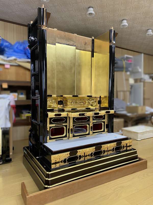 木地直しを終えたお仏壇は漆塗り職人さんのもとで塗りの工程に入り、約4ヶ月という長い時間をかけて塗りの工程が完了しました。